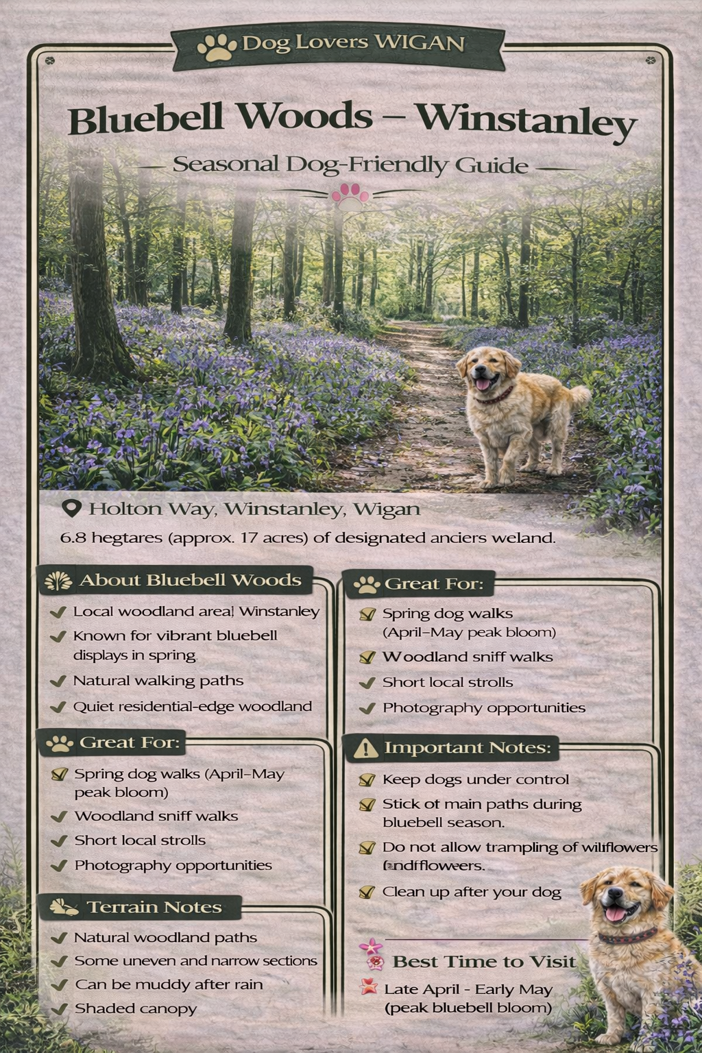 If you’re visiting Bluebell Woods in Wigan with your dog or family: